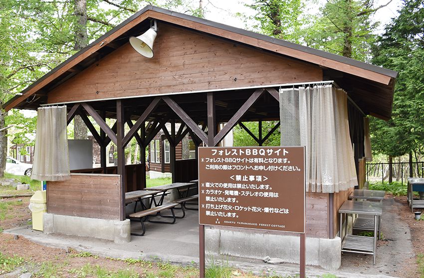 宿泊なしで気軽にバーベキューができる屋根付きのデイキャンプエリア